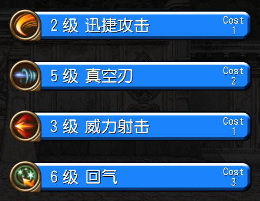 例:回气(射击技能)为3级技能树技能,因此所占用的Cost为「3」。